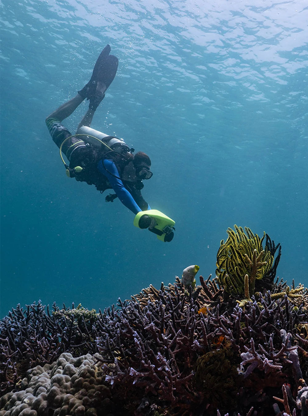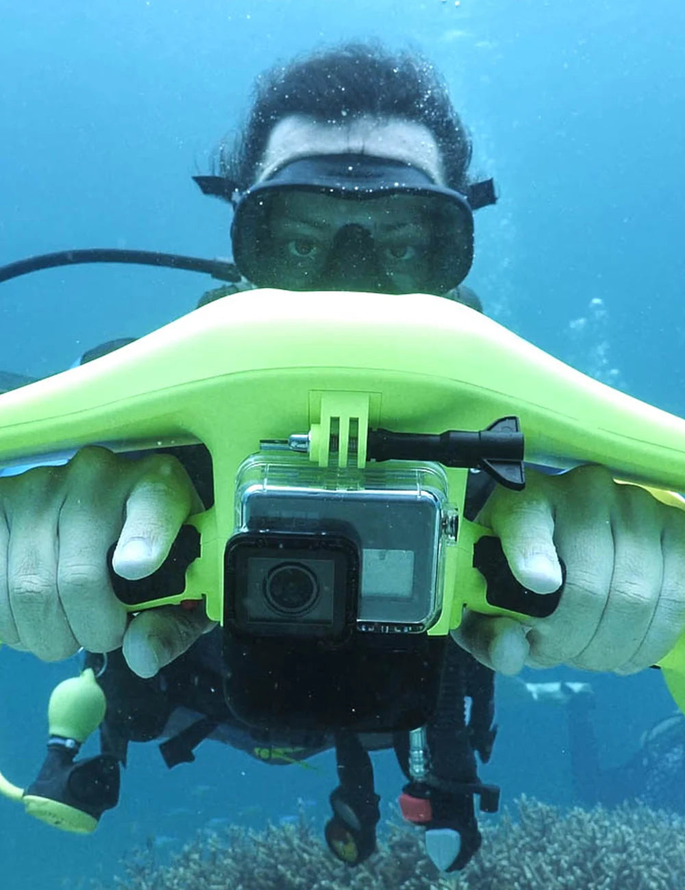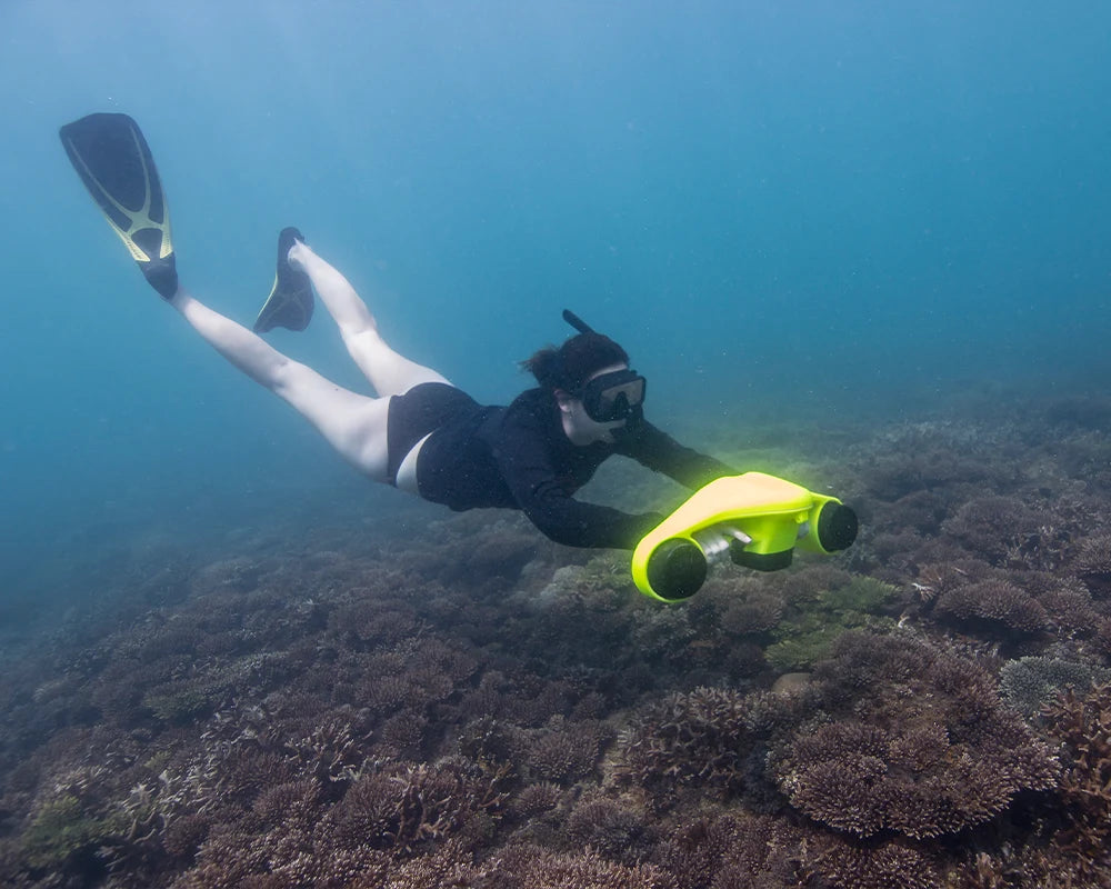 Weighing just 7.7 lbs, this compact electric underwater scooter is perfect for travel. It fits as a carry-on for commercial airlines, allowing professional divers to explore a 40m (131ft) underwater world with family and friends.